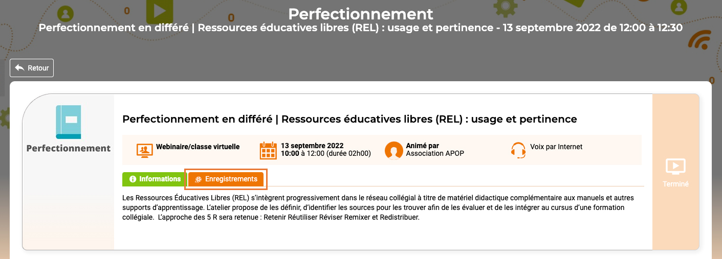 Les enregistrements disponibles se trouvent dans votre tableau de bord :